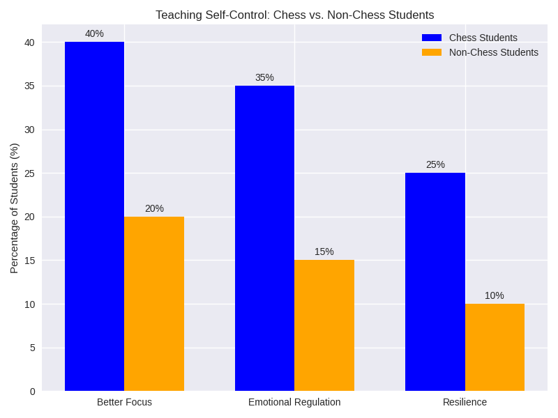Chess teaches them not to panic when the problem looks complicated but to break it down step by step. Teaching Self-Control In disadvantaged communities where stress and frustration can be a daily reality, chess becomes a venue for learning emotional control. Players learn to control anger after a blunder, accept losses graciously, and stay focused under pressure.